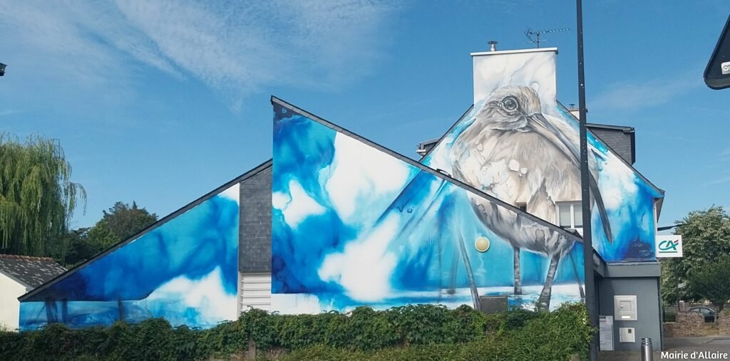 – Un majestueux courlis cendré entouré d’eau signé Daniel Mac LLOYD sur la façade du Crédit Agricole.