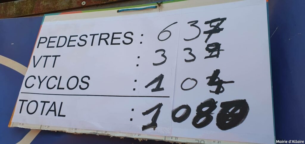 1080 inscrits pour cette nouvelle édition, qui a ravis tous les participants qui avaient le sourire, sous le soleil, à l’arrivée à la ferme de Coueslé. 637 marcheurs, 339 VTT et 104 cyclos ont pu découvrir la campagne d’Allaire et des environs, sur des circuits préparés par le club cyclos VTT, marche de la commune.