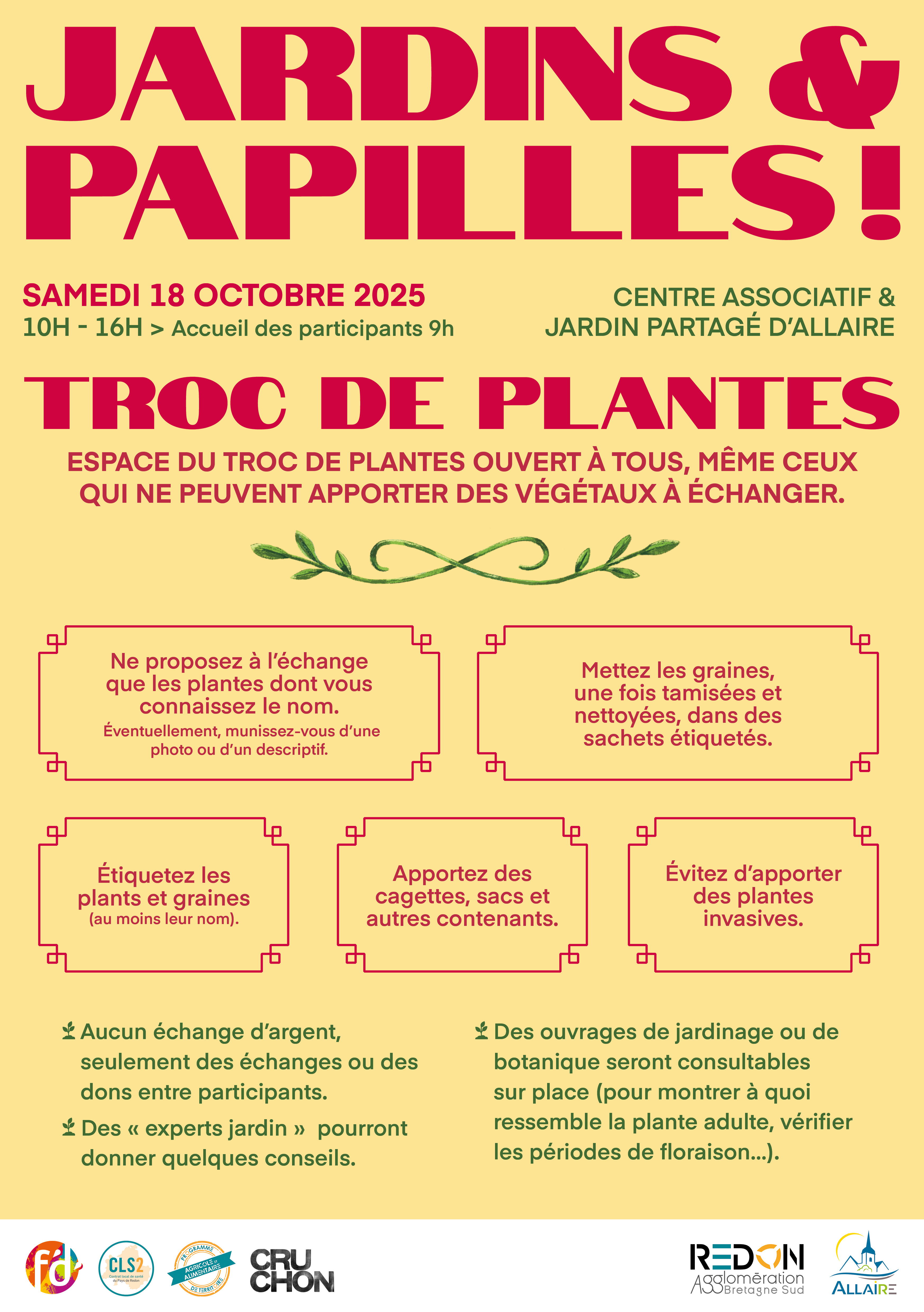 Samedi 18 octobre de 10h à 16h au Jardin partagé / Centre associatif, rue de Redon à Allaire
