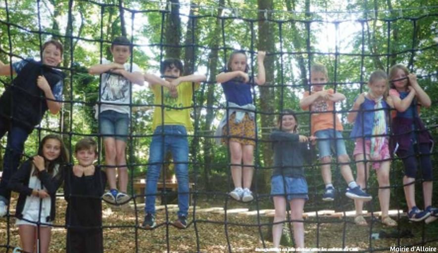 Depuis l’été 2019, les enfants d’Allaire (ou de passage pendant les vacances scolaires) peuvent également profiter du parcours d’accrobranche installé dans le bois de Coueslé et réalisé à l’initiative du Conseil Municipal des Enfants.