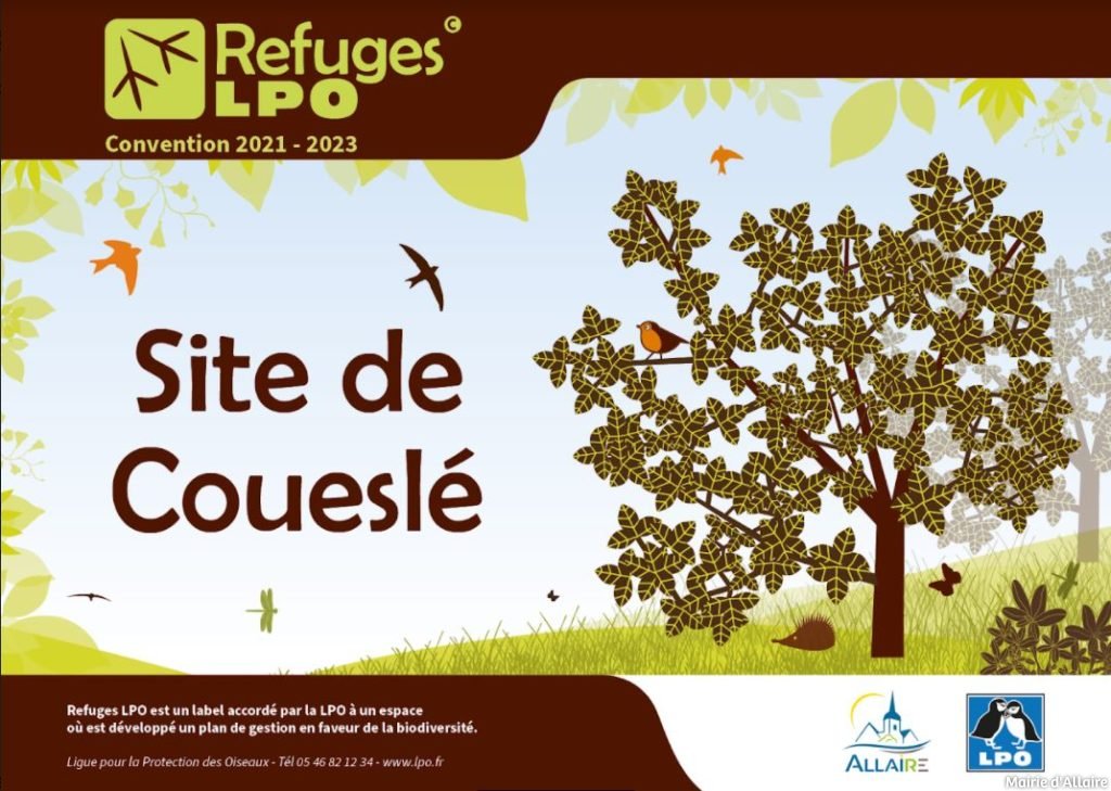 Tout prochainement, des panneaux (au nombre de 4) seront apposés aux entrées du Site de Coueslé, désigné comme site REFUGE L.P.O. : ce label est accordé aux espaces où est développé un plan de Gestion en faveur de la BIODIVERSITE et nous en sommes très fiers !