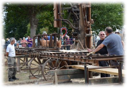 - A Christian Le Clève, collectionneur passionné qui nous fait partager sa passion pour notre patrimoine technique agricole et à toute son équipe motivée ; vous avez pu découvrir ou redécouvrir la magnifique scierie de 1925 en parfait état de marche, et une autre plus récente, mais tout aussi efficace pour débiter en quelques secondes et avec précision, de très belles planches de bois ;