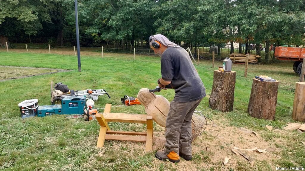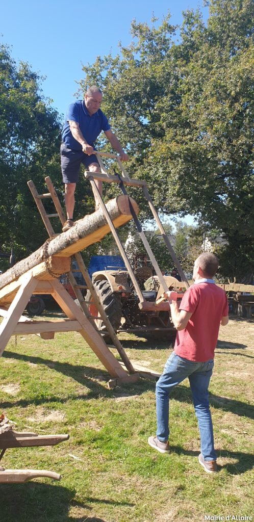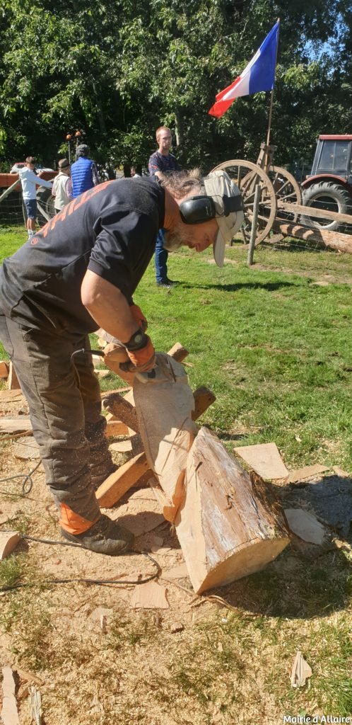 C’est aussi l’occasion de présenter au public, de très anciennes machines, restaurées, qui fonctionnent encore et permettent de produire encore de belles planches bien rectilignes ! ou des animations spectaculaires comme la taille de sculpture à la tronçonneuse.