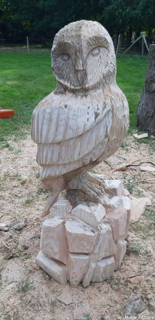 NOTRE SCULPTEUR A LA TRONCONNEUSE a réalisé cette année, une magnifique CHOUETTE !