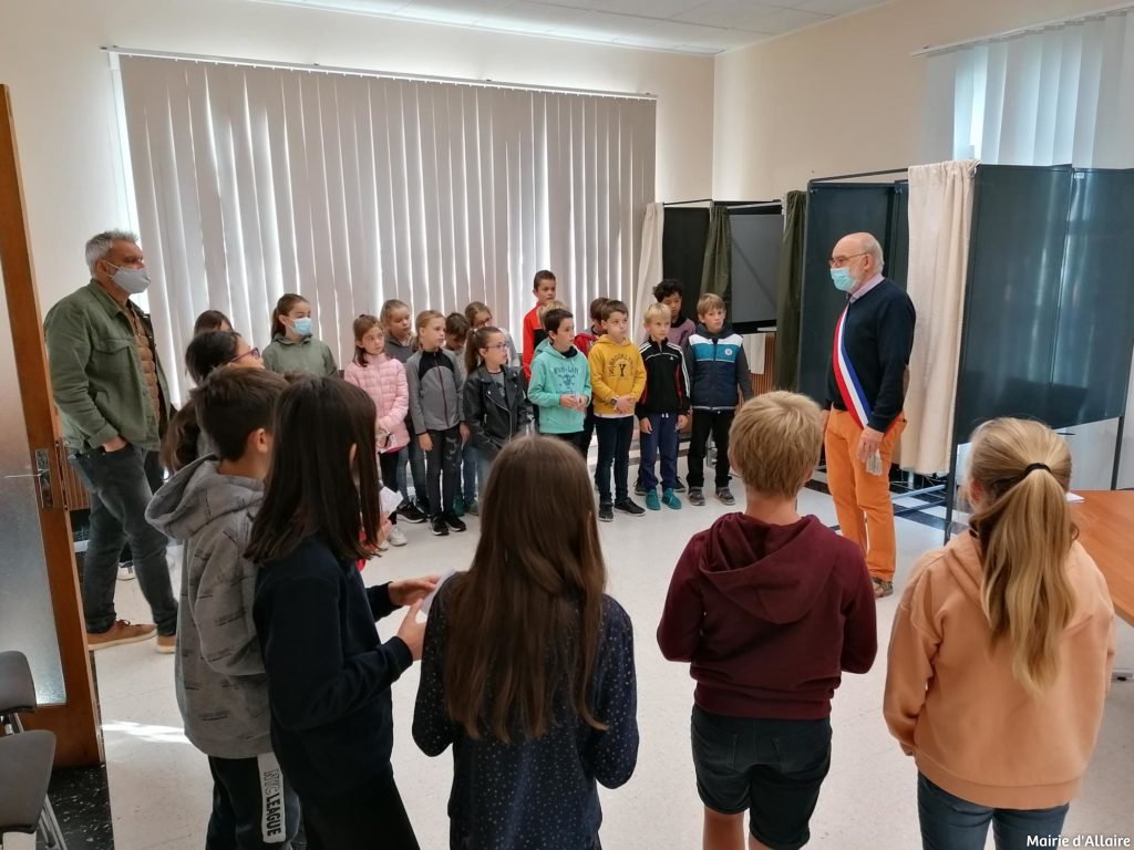 Ce vendredi 15 Octobre, les enfants des classes de CM1 et CM2 des écoles Sainte Anne et Eugène et Maria Renaudeau sont venus en Mairie afin d’élire leurs conseillers. Le CME comprend 18 conseillers, renouvelés par tiers chaque année, soit pour cette année 3 pour chaque école. Dans les 2 semaines précédentes, les 24 candidats s’étaient inscrits, avaient construit leur programme et fait campagne. Pour le vote, les bulletins de vote, enveloppes avaient été installés, comme pour les élections des plus grands. Chacun présentait sa carte d’électeur, passait dans l’un des isoloirs du bureau de vote. Le vote était contrôlé par un émargement.