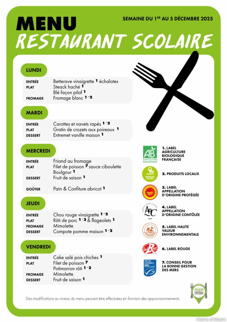 Accueil / Enfance & Jeunesse / Restaurant Scolaire / Menu du restaurant scolaire